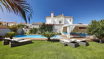 De 7-badkamer villa beschikt over een bubbelbad voor extra ontspanning, samen met een zwembad.